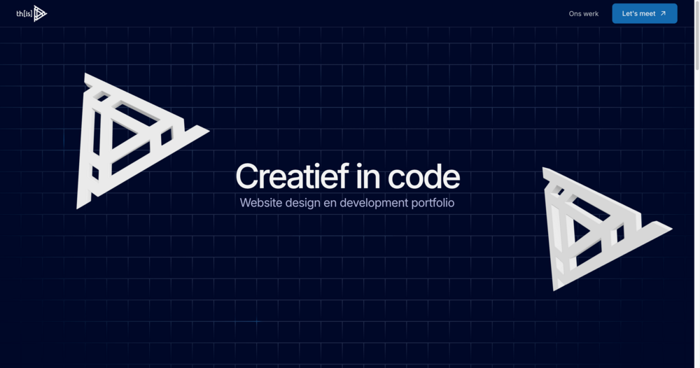 Voor de portfolio website van This is Creative heb ik het grid met blauwe vuurvliegjes en het 3D-logo gemaakt. De site is opgezet in Webflow en om deze componenten makkelijk te kunnen gebruiken op verschillende pagina's, heb ik ze gemaakt als Web Components.